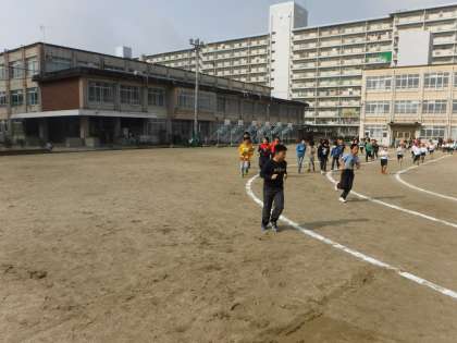 子どもたちは,寒い中ですがマラソン大会に向けて一生懸命走っています。