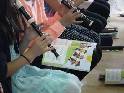 ピアノに合わせてリコーダーに挑戦しました。