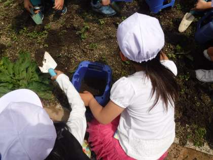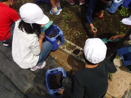 生活科の学習で,あさがおのたねを一人一鉢植えました。子どもたちは「たねさんが,早く大きくなりたいな,って言っているよ」「大切にお世話をしたいね」と一生懸命でした。