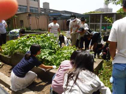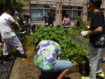 学習を終えた後に苗を植える場所をみんなで協力してつくりました。
