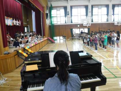 1年生にリコーダーの演奏と,歌のプレゼントをしました。