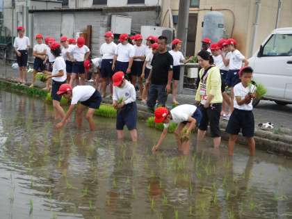 子どもたちは,2年生のときに田植えを経験しており,田植えをするのは3年ぶり!