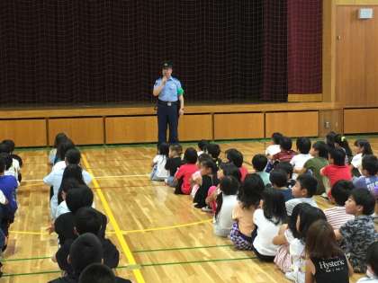 避難訓練(不審者が校内に侵入を想定して)をしました。伏見署の方にも来ていただきました。「「いかのおすし」を守ってください。」とおしゃっていました。