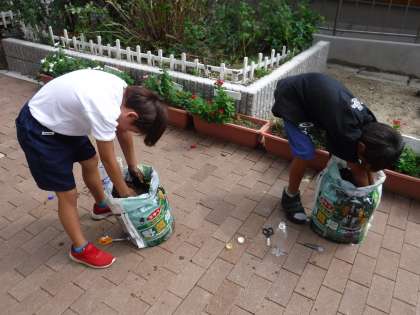 外に出て,まずは土の準備です。