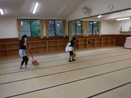 後片付けが終わり,退所式をして志摩マリンランドに向かいます。