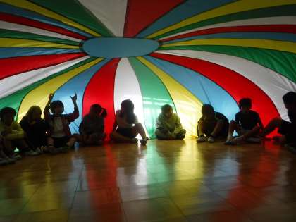 みんなで巨大バルーンを使って遊ぶなどして,