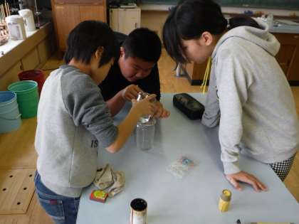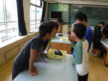 今日は初めて使う実験器具もあり。子どもたちは声をかけあったり,教科書を確認したりしながら学習を進めていました。