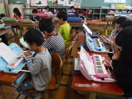 1年生のために,一生懸命けんばんハーモニカを練習しています。上手になってきました。