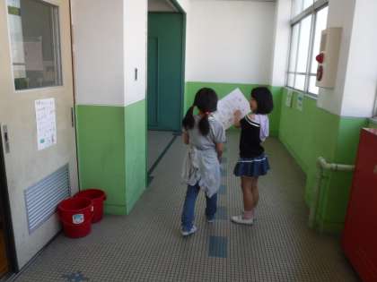 優しい2年生に連れられ,1年生がまだ行ったことのない教室をまわりました。