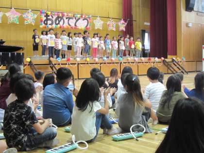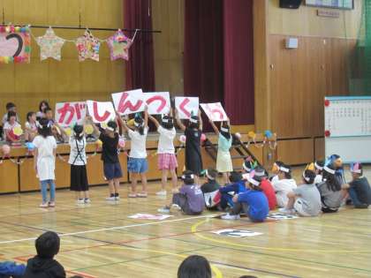 3年生は,元気よい発表で1年生に楽しんでもらうことを目標に