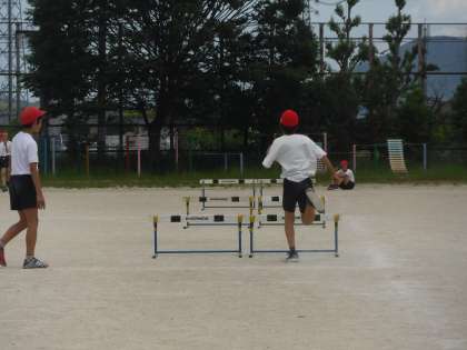 体育の学習では,ハードル走の学習を進めています。