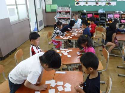 算数では,「10はいくつといくつ」になるか考えながら,10づくりの神経衰弱をしました。数字を見て,10になる数を考えながらカードを取ることができていました。
