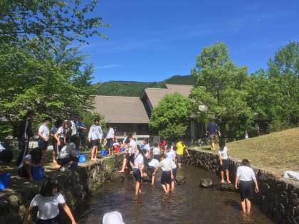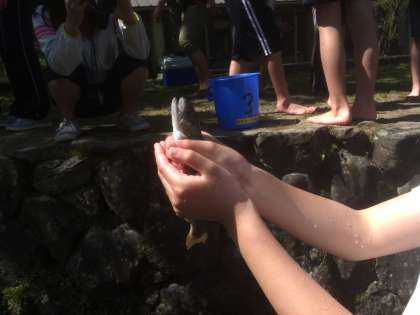 水は少し冷たいですが,いい天気のもと元気に活動しています。