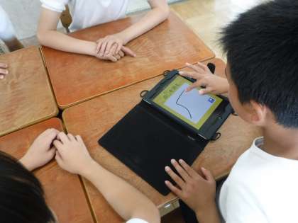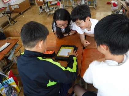 今日の帯学習では,タブレットを使って漢字の学習をしました。