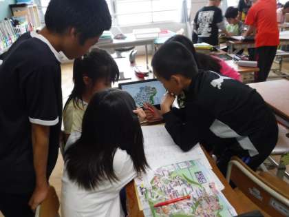 どんな動物がいるか,園内がどうなっているかなど,タブレットで調べながら話し合っていました。