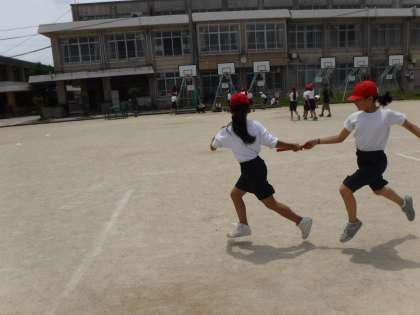 リレー学習が始まり,グループで,始めと比べてどれだけタイムを縮めることができるのかを練習しています。今日は,バトンゾーンの使い方をグループで考えました。