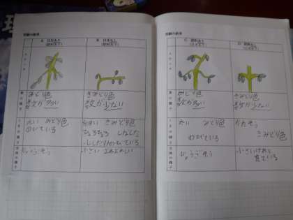 春に植えたインゲン豆が条件によってどれくらい成長しているのかを観察し,まとめました。条件を確認しながら,見やすいノート作りを工夫しました。