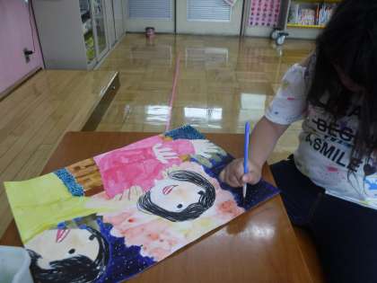 背景の仕上げをして山の家での思い出の絵が完成しました。楽しかった思い出を胸にこれからは学校で色々なことを頑張っていきましょう。