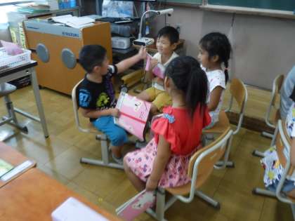 国語で自分の好きなことを友だちに書いて知らせる学習をしました。