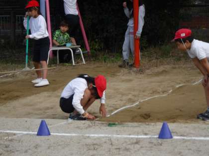 片足で踏み切り,両足で着地する…当たり前のようですが出来ていない子どもが多かったので少し注意して跳ぶようにアドバイスをしてもらうと,みんなの跳び方も少し変わり…