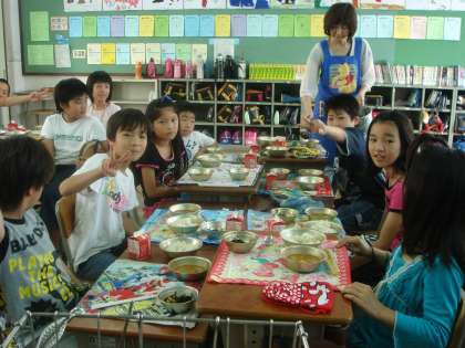 やっぱり、いつもと違う教室で食べる給食は楽しかったようでした。