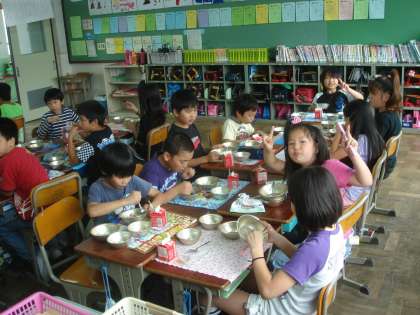 最終リハーサルを終えて,子どもたちはいい表情で給食を食べていました。