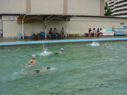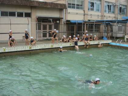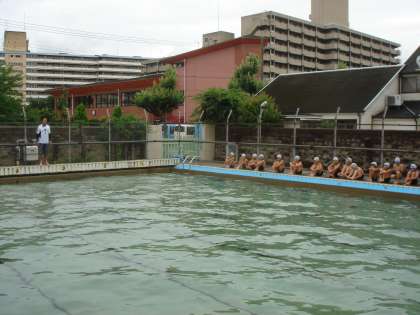 曇り空のもとでしたが,4年生の水泳学習が今日からスタートしました。