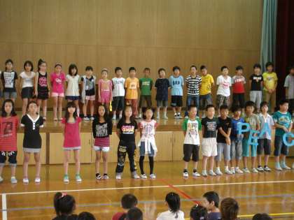 学芸会で『Love&Peace!』をさけんだ子どもたちらしく,今回は『あい』をさけびました。「みなさんにとって,あいとはなんでしょうか?」という問いかけから,歌を歌い,谷川俊太郎さんの『あい』という詩を全員で読みました。
