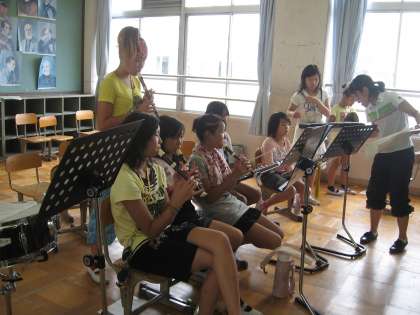 7月27日(水)の音楽の夕べに向けて,鼓笛クラブの子どもたちが練習に励んでいます。中間休みと昼休みになると,4・5・6年生の子どもたちが急いで音楽室に集まって,練習開始です。今年は新たな曲を加えて,全部で4曲を披露します。