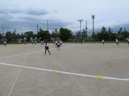 体育の時間にリレーに取り組みました。どうすれば速くなるか話し合いながら,バトンパスを工夫して取り組んでいました。