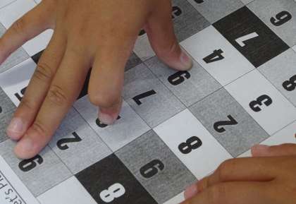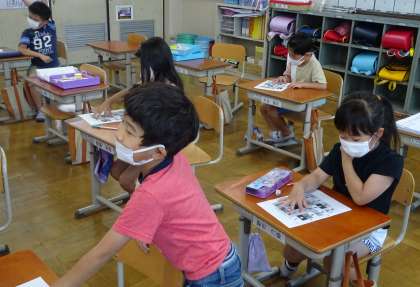今回は,聞いた数字を指で押さえるというゲームをしました。遠く離れた数字を言われると,「届かない〜!」と,楽しみながら取り組んでいました。