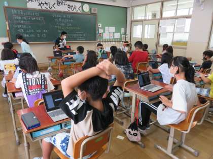 長い夏休みも終わり,二学期が始まりました。初日にはたくさんの荷物をもって元気に登校した4年生です。