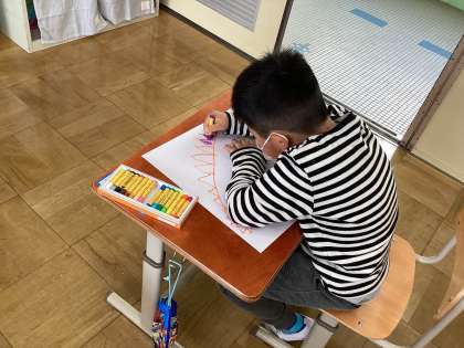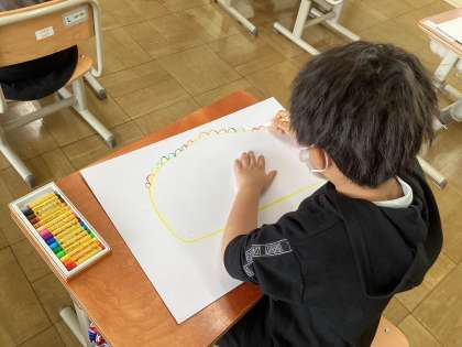 子どもたちは,思い思いの色を使って,楽しそうに絵を描いていました。