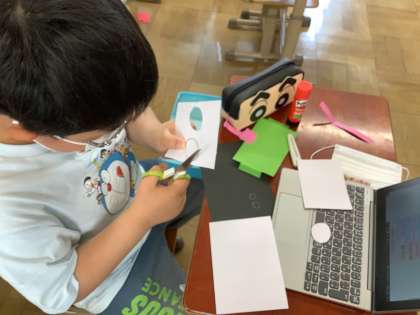 色画用紙を使って,自分だけのオリジナルのマスク作りをしました。