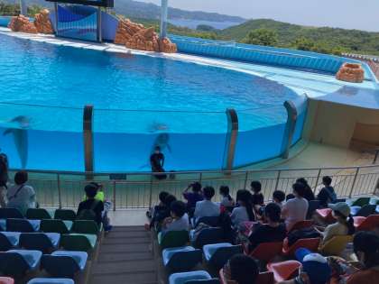 イルカショーを見て,お昼ご飯を食べます。午前の活動が終わりました。
