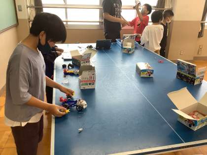 どうつなぐと,どの向きに,どのように車が走るのかということについて,試行錯誤していました。