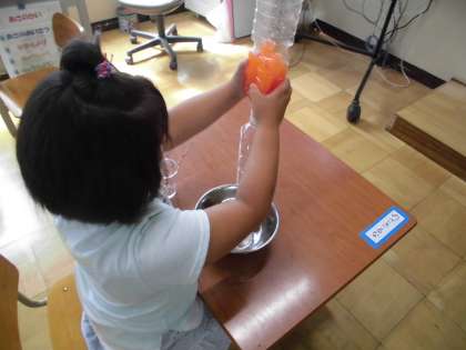 スライム作りをしました。絵の具で色をつけてみんな違ったスライムが出来上がりました。