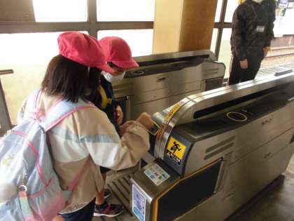 藤の木小の子どもたちは、観月橋まで歩いて電車に乗っていきました。