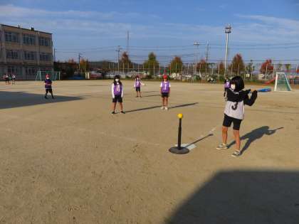 体育の時間に「ベースボール」を行いました。最初はバットにボールが当たらず,苦労しましたが,慣れてくるとどんどん距離が伸びていきました。