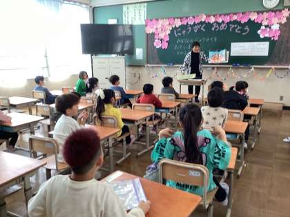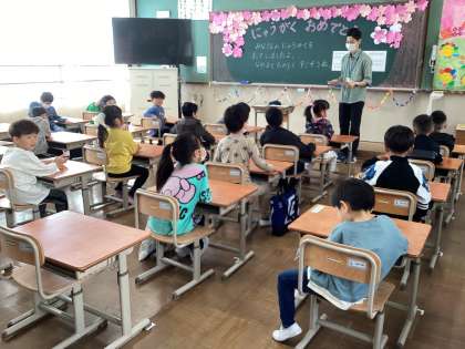 1年生、2日目です。少し緊張の面持ちもありながらも、しっかりお話を聞いています。
