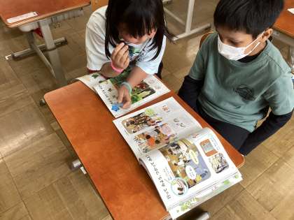 教科書を開いて、どのようなことをしたいのかを話し合いました。