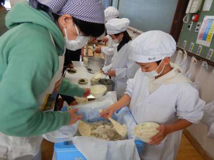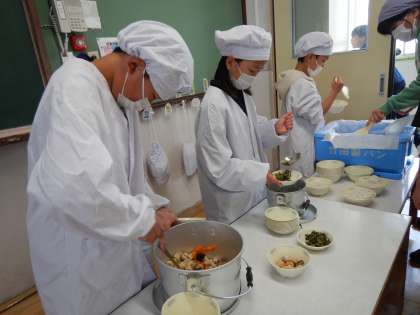 どちらのクラスも、6年生が給食の準備・片付けを5年生を教えてくれています。さすが先輩!頼りになります!
