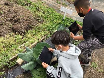 春の植物や生き物を見つけて観察をしました。そして、タブレットで写真を撮って記録に残しました。