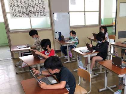 タブレットを使った学習を始めました。まだ不慣れですが、みんな頑張っています。