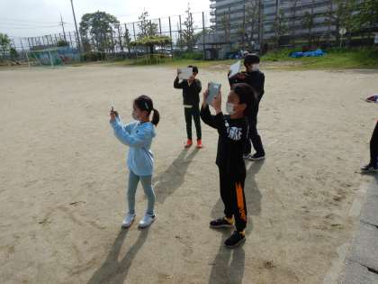 この日も朝から運動場に出て、みんなで空の様子を観察しました。空のより細かい部分の様子まで気づけるようになってきました。