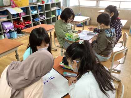 漢字の部分について学習をしました。グループごとに、同じ部首の漢字を集めてホワイトボードに書きました。たくさん集めることができました。