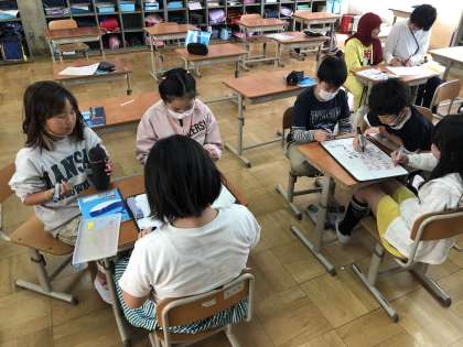 1人では難しい問題も、友達と話し合いながら解決しています。
