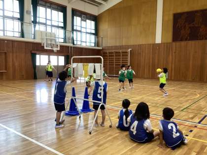 中学年ユニットでのリレーの学習が終わり、3年生はエンドボールが始まりました。まずは、エンドボールのルールを確かめながら進めました。