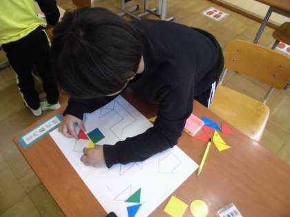 算数の学習では、色板遊びをしました。