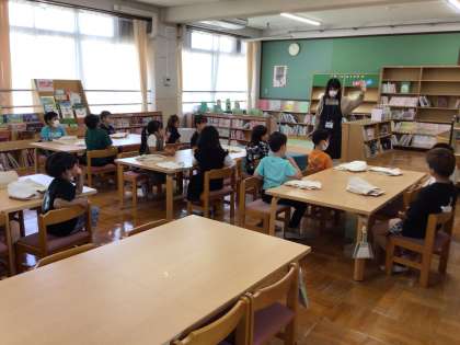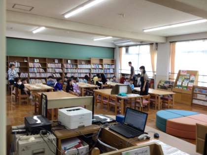 待ちに待ったメディアセンターに入室しました。1年生は初めての教室です。本がたくさんあって驚いていました。2年生は久しぶりだったので、たくさん本を読んでいました。